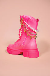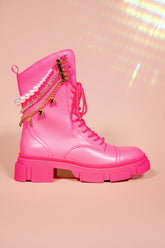 These beauties are as revolutionary as you are, transforming from sassy to sweet with removable pearl, rhinestone, and pegasus charm shoewelry. Each boot is also equipped with fur shoewelry for a cozy winter welcome.