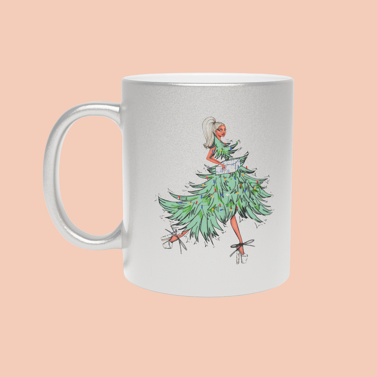 This shimmering metallic 11oz mug turns any morning into a festive little glow-up. Finished in reflective silver or gold, it catches light like a string of twinkle lights — giving the artwork a soft, magical shimmer. Illustrated by CHEVAL.