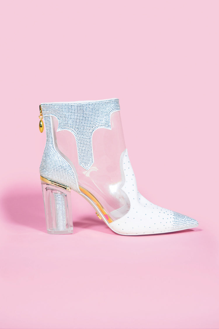 Can I get a yee-haw?? CHEVAL knew this shoe needed to come to life before she decided to make shoes at all. From a young age, her grandfather's nickname for her was "Dolly" - which explains a whole lot since. This boot is for kicking up dust and stomping out some sparkle. Paired with cut off dukes or the floofiest tulle skirt, SHE IS someone who will stand for the rhinestone cowgirl in all of us.